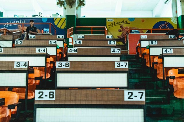 球探席長這樣,這是第二天回去拍的。有點像大學的雙人座位?