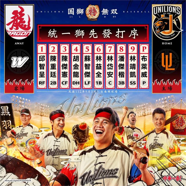 邱智呈 RF 陳重廷 2B 陳傑憲 CF 胡金龍 DH 蘇智傑 LF 林益全 1B 林岱安 C 潘傑楷 3B 林靖凱 SS 布萊威 SP -- ※ 發信站: 批踢踢實業坊(www.ptt-web.org.tw), 來自: 39.9.136.93 (臺灣) ※ 文章網址: https://www.ptt-web.org.tw/Lions/M.1693560627.A.EC2
