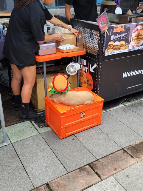 很可愛的臘腸狗 但牠的注意力都在食物上