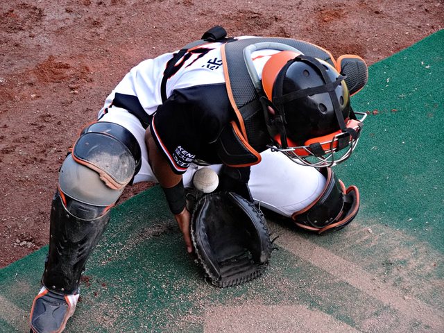 捕手會輪流訓練所以做完會先到旁邊休息
