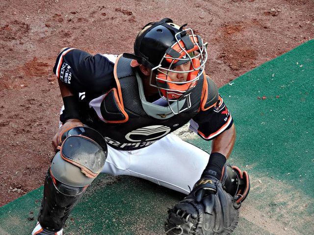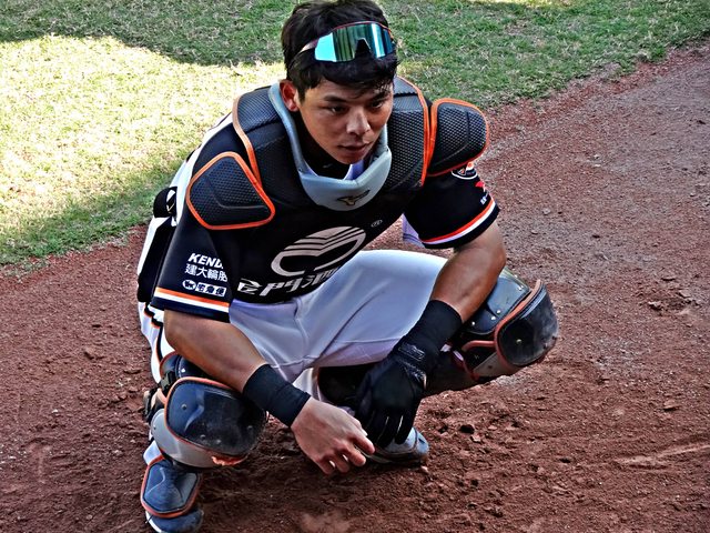 這時候捕手就要全副武裝,也包含護檔要穿,教練還笑說怎麼還在穿尿布XDD