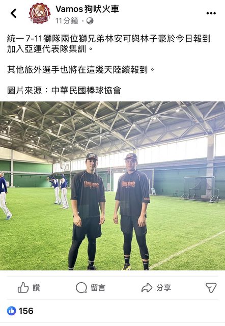 統一7-11獅隊兩位獅兄弟林安可與林子豪於今日報到加入亞運代表隊集訓。 其他旅外選手也將在這幾天陸續報到。 圖片來源:中華民國棒球協會 -- ※ 發信站: 批踢踢實業坊(www.ptt-web.org.tw), 來自: 27.242.167.184 (臺灣) ※ 文章網址: https://www.ptt-web.org.tw/Lions/M.1695093710.A.036