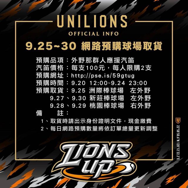 首先,關於上週客場賽事 獅隊秉持服務客場球迷 推出 #客場限定 #專屬汽笛