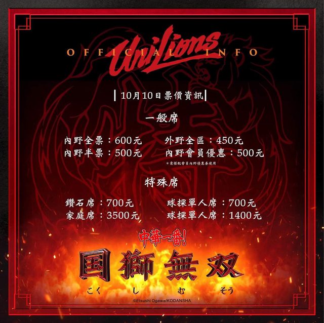 ▍#国獅無双票價資訊 ▍