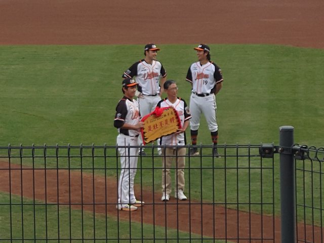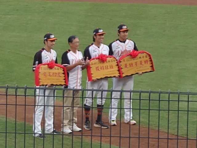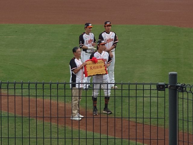 球團特別製造的三個匾額 由馬老師頒贈