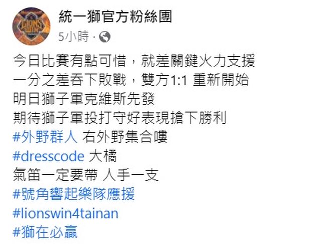 消息來自統一獅官方粉絲團FB貼文 幫大家畫個重點 dresscode:大橘 小號樂隊應援 氣笛要帶 https://i.imgur.com/64dd0g1.jpg
