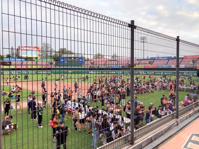 回球場時簽名會還在進行中