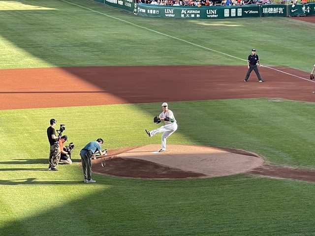 投手丘熱身的嘟嘟連照