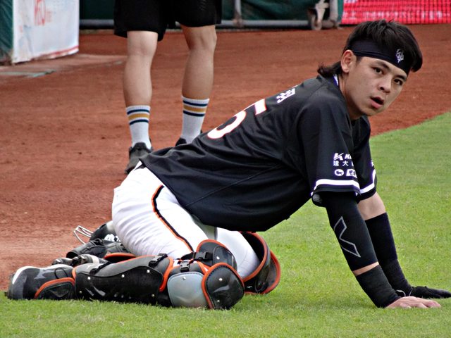 重羽今天打擊狀況不好傳球阻殺再加油,不過跟投手搭配很棒,蹲捕擋球也很讚