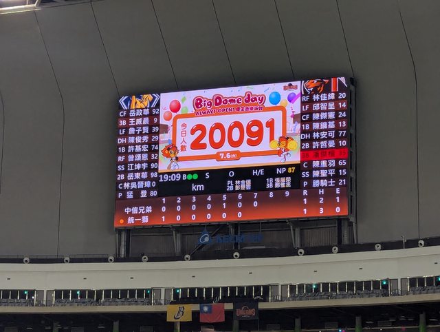 整體來說,大巨蛋看球很舒服,廁所很棒(可能出了台南看哪裡廁所都很棒吧),除了跳完嗆司會流一些汗之外大部分時候溫度都很舒適也不太需要怕下雨。如果有機會再上台北看球的話,拜託喵開內野全主場,看到一堆黃黃的在對面唱戰歌實在是很不開心。