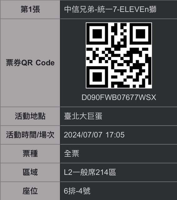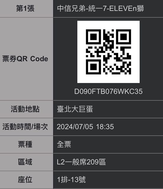 7/5(五) L2 內野209區第1排