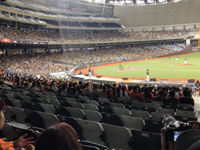 大巨蛋內野坡度很平,所以不用人站起來,我前面坐上半身稍微長一點的