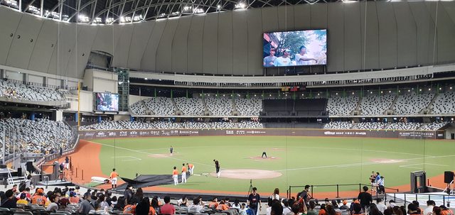 在大巨蛋裡面, 比起在露天球場來講需要整理球場的區域變少了