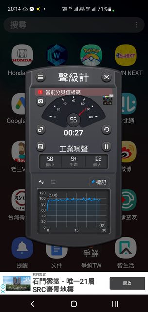 用手機開分貝計測了一下分貝, 數值僅供參考