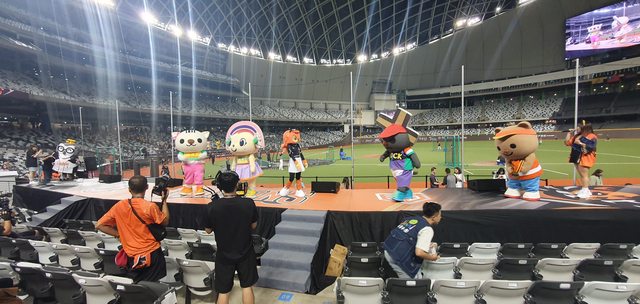 賽前有個活動是和 OPEN 家族合照, 他們先上來舞台跳舞