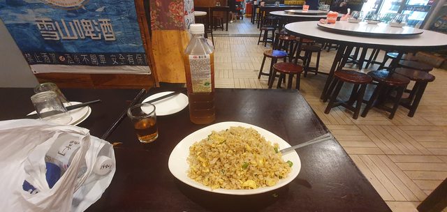 繞了一大圈結果只在地圖上找到的熱炒店吃了炒飯配麥茶