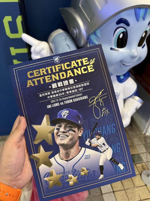 今天內野區進場都有發A4大小的觀戰證書..