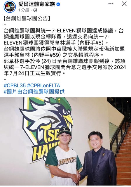 → RX11: 說穿了大概是郭沒發揮空間想走 統一做個順水人情 07/24 13:49