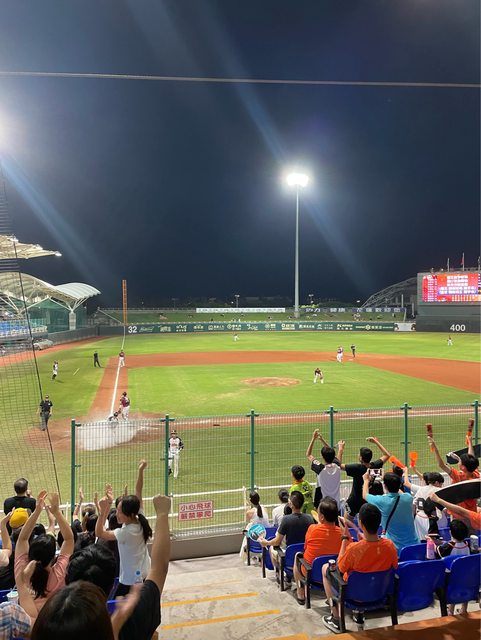 今天大概賽前才到 有點幸運找到一壘側完全沒人坐的位置