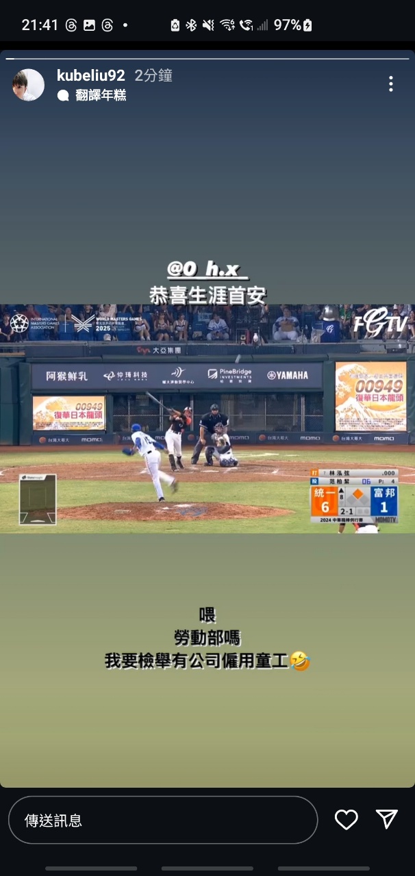 推 yuri0626: 二軍家長要打電話檢舉了XD09/10 21:42