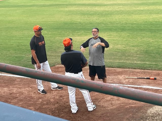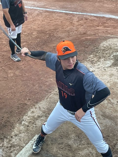 賽前先來三壘側看看,洋教正在指導胡大哥