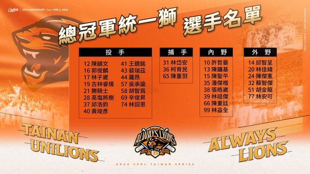 ▍ALWAYS LIONS 總冠軍戰 統一獅選手32人名單 ▍