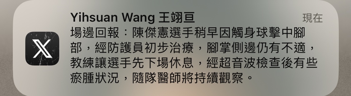 推 Starvinsky: 陳潔線跑壘看起來腳沒問題那就好 11/22 12:24