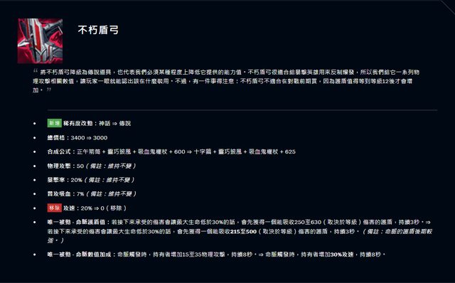 了過來,前陣子大多數人都是選擇盾弓+那歐疾刃的出裝,但在這 13.10 這兩件裝雙雙調