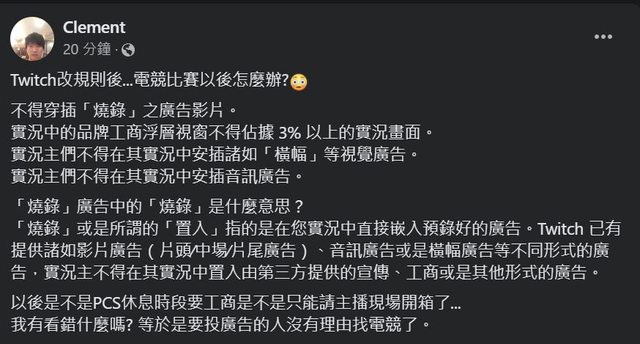 推 seazure2016 : 某推文真的搞不清楚狀況 這影響的是所有在twitch實 06/07 16:13