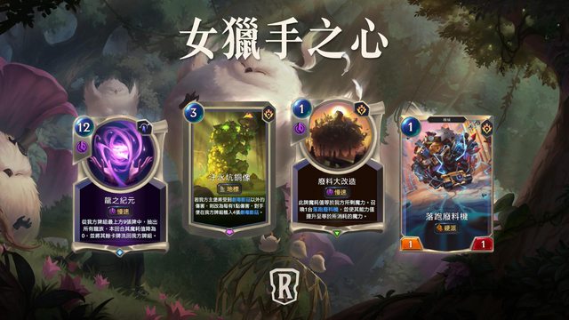 從我方牌組最上方9張牌中,抽出所有龍族,本回合其魔耗值降為0,並將其餘卡牌洗回我