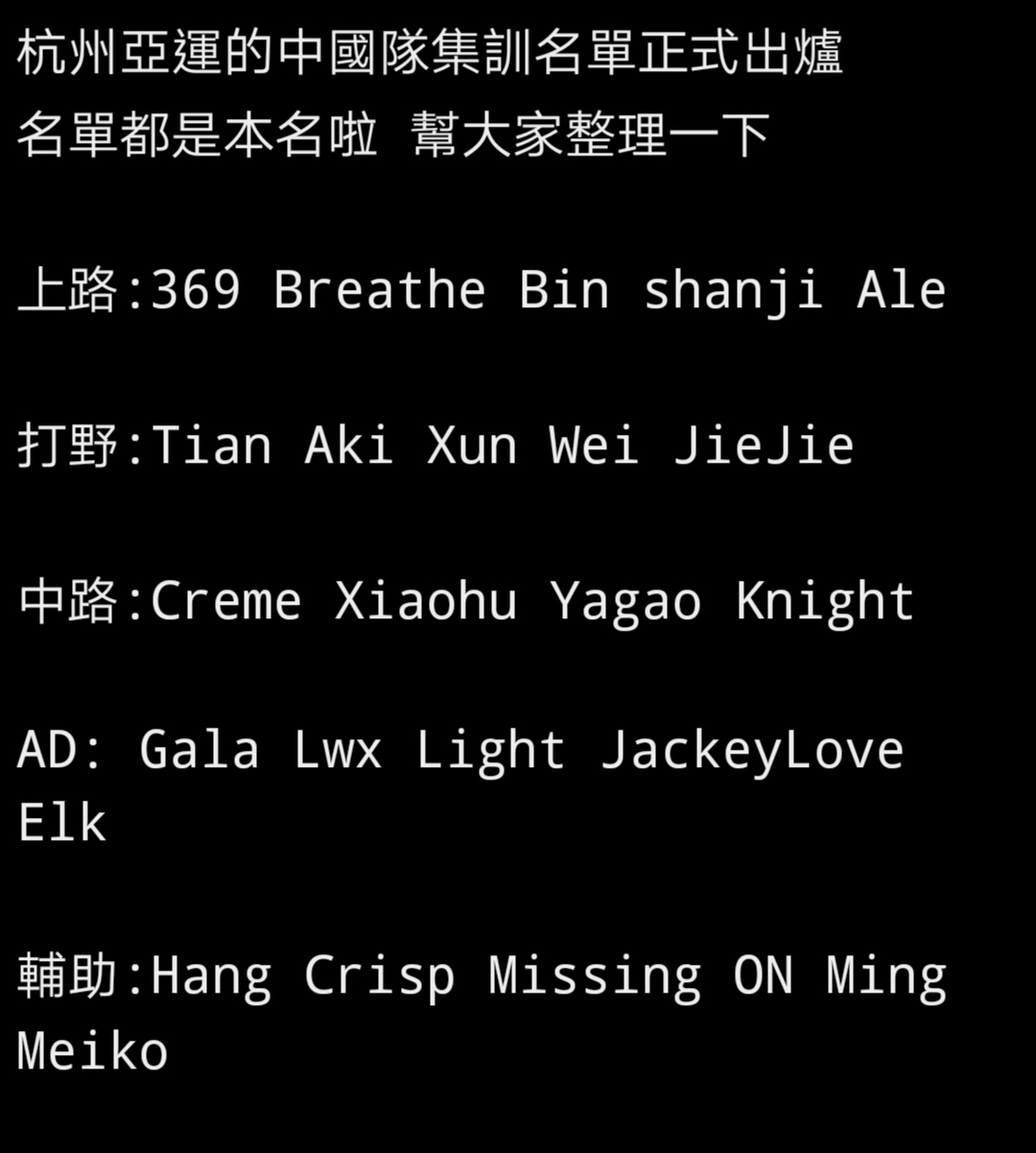 → cornsoup : 當初集訓名單是 Tian Aki Xun Wei JieJie 06/26 00:49