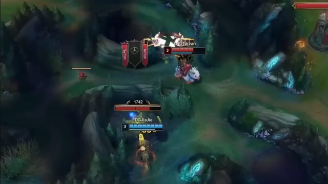 在 LNG vs EDG 的第二場,Jiejie 的銳兒前期入了 Tarzan 史瓦妮的野區