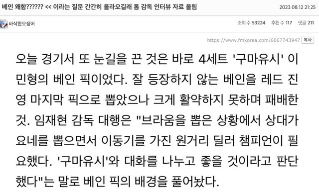 → ubiqui : 剛有看到一篇Oner採訪的, 他們說他今天還行了 08/13 00:04