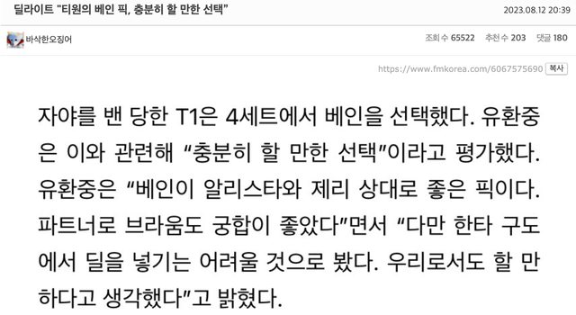 → NIEN1EN1997 : 只看這篇還以為T1被3-0,韓網真的低能,尤其是最後 08/13 01:00