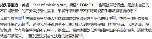 錯失恐懼:在SKIN中或玩偶公仔中意即害怕沒蒐集完全的心理