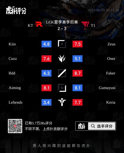 標題[閒聊] T1 vs KT 虎撲賽後評分表