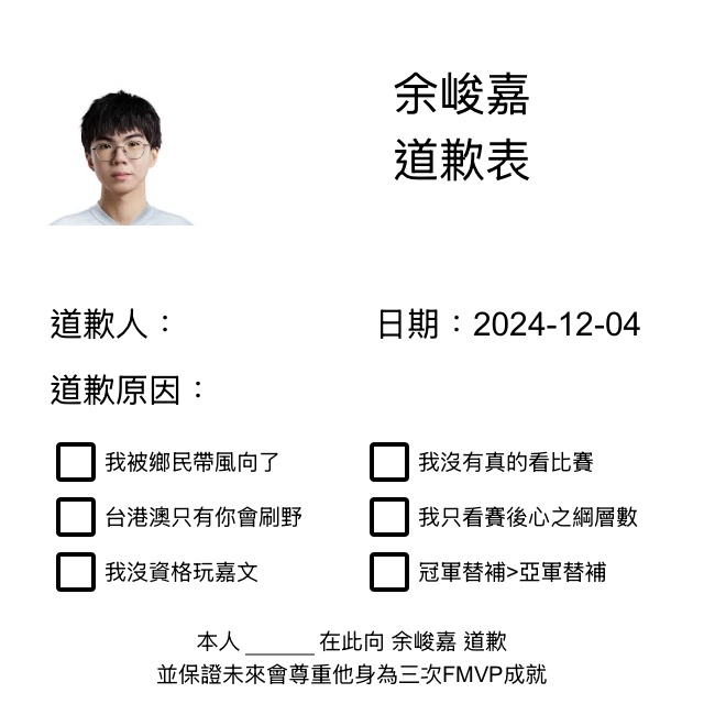 推 EEEEEEEnd14 : 這邊也能發道歉表的嗎 12/04 18:52