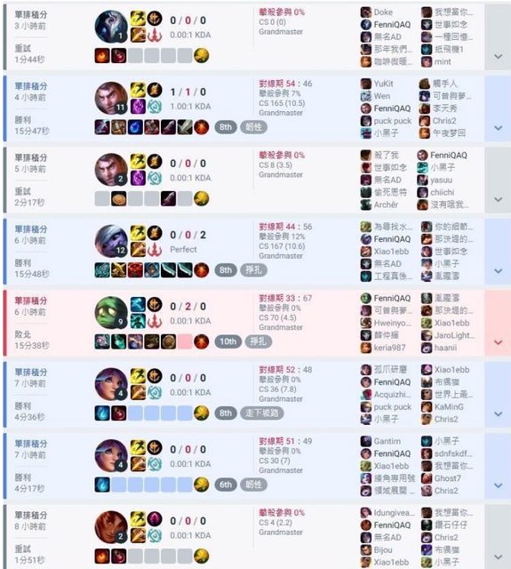 : 第四個 小黑子 也是洗分咖 對戰紀錄在上面自己對 近期最知名的事蹟是 8個洗分咖堵