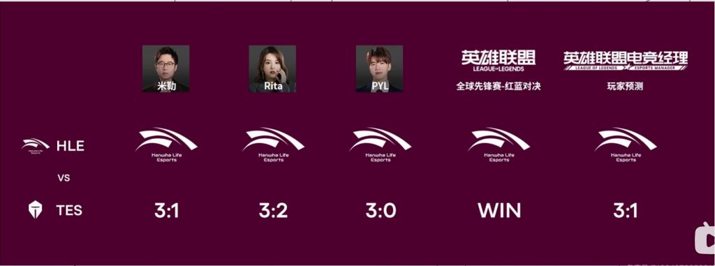 是 hle 連勝四把才艱難走到 tes 面前,二者高下立判,大膽預測,今天 3-1 輕鬆拿下