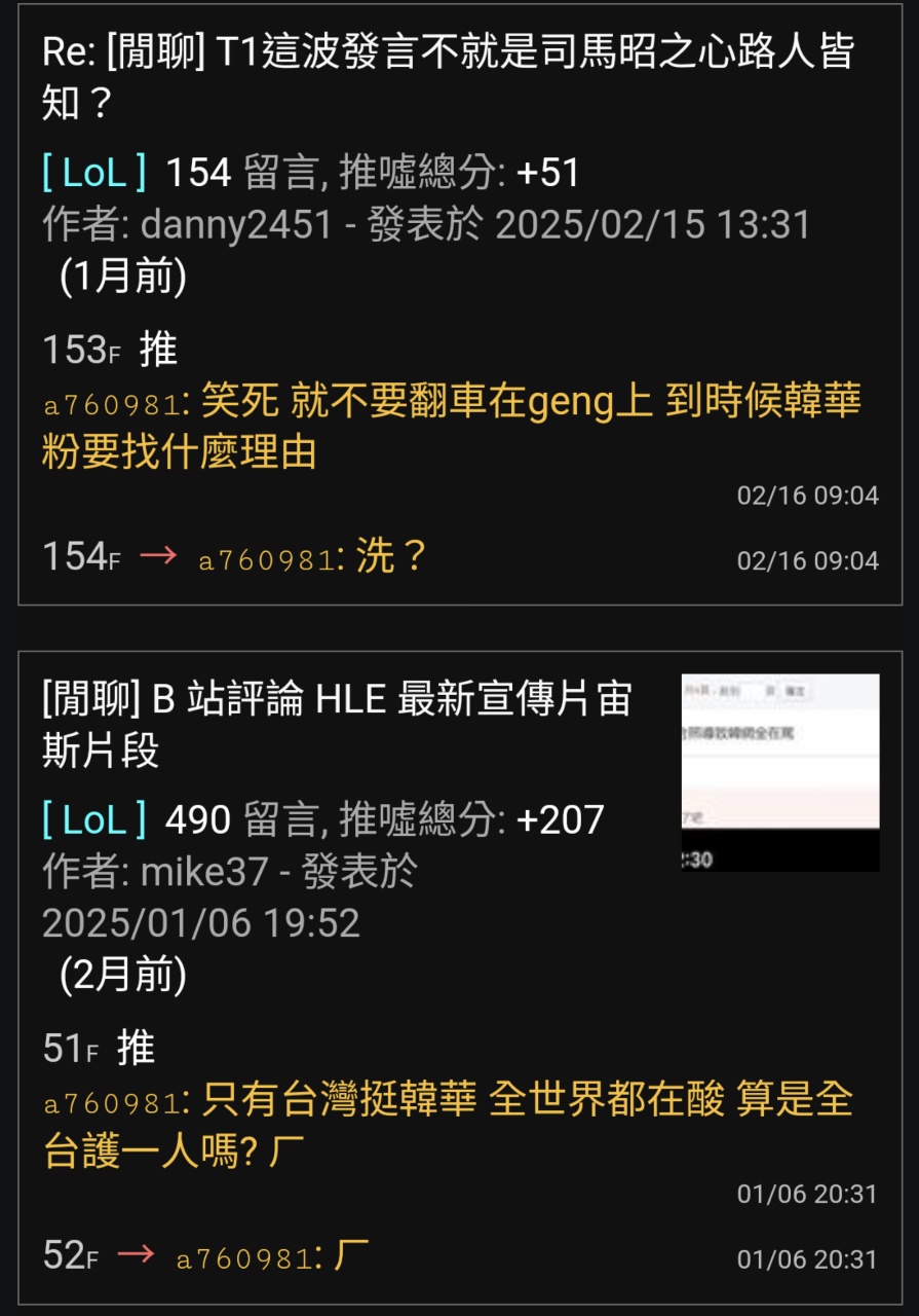 推 oozz00456 : 之前宙斯被t1粉攻擊的時候 他們好像也沒證據欸03/22 14:15