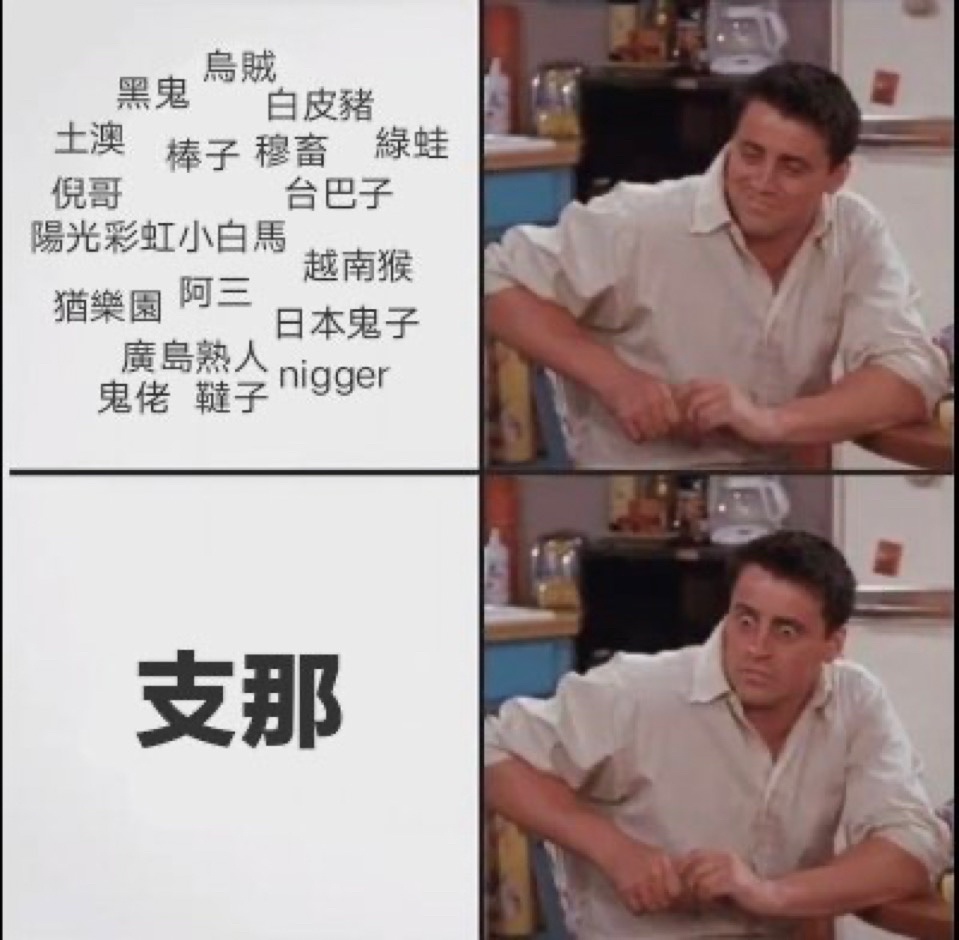 neone : 有些人自己不懂外國歧視梗 就覺得歧視沒有發生.. 07/05 19:39