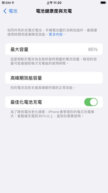 - 電池健康度 85%