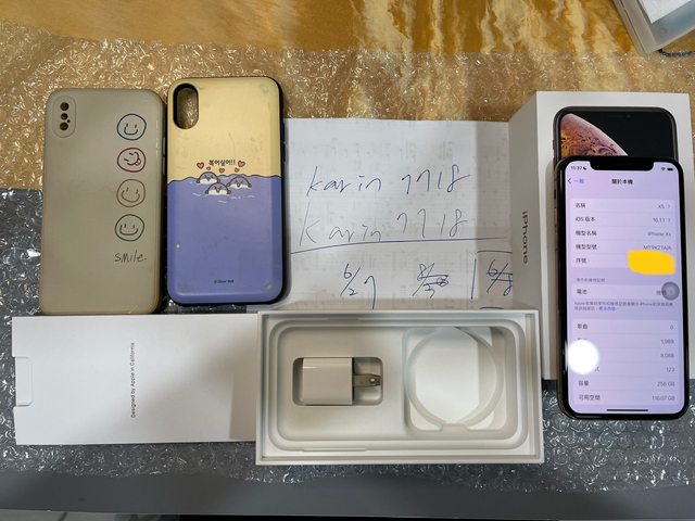 盒裝、保護貼已換新、背板新貼膜、二手充電器、附3個保護殼;無充電線,背板附上貼