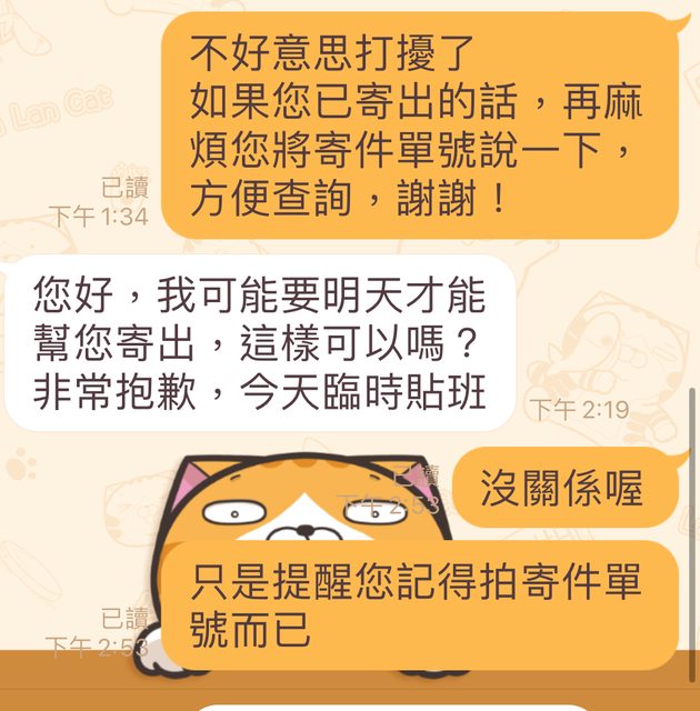 因遲遲沒有收到寄件訊息,我提醒bookerrr記得寄貨。