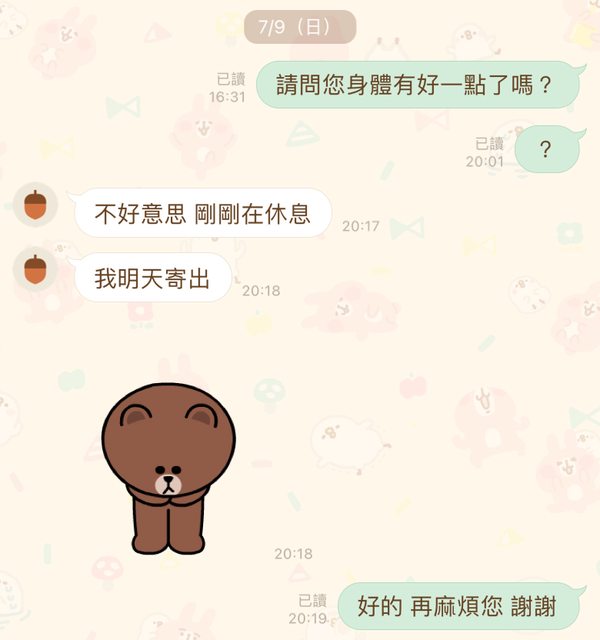 → CrystalSugar: 也告知願意等 中間因身體不適沒有主動聯繫比較抱歉 07/12 21:12