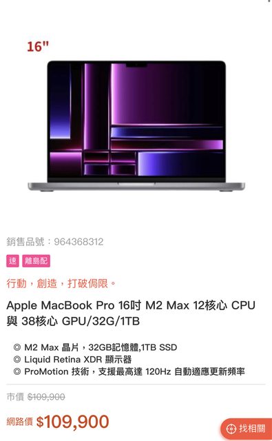 標題[販售] 台中 MacBook Pro M2 Max 32G 1T 2023 16