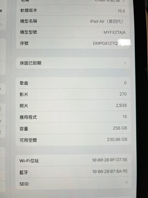 標題[販售] 台中 iPad Air4 WiFi 256G