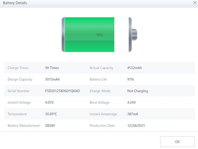 2024/11/10,查詢電池健康度91%