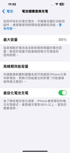 電池健康度 86%,無維修紀錄