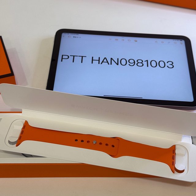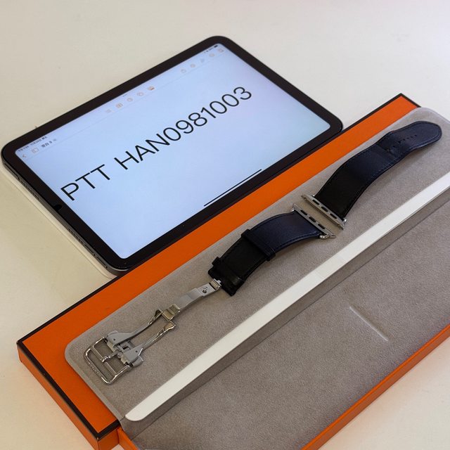 主機、充電線、橘色錶帶、Hermes Single Tour 45滟m Deployment Buckle NOIR色 蝴蝶